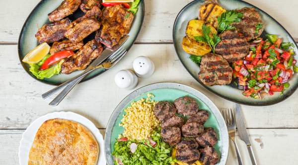 Свинска флейка, свинско шишче, кюфте, кебапче, бланширани картофи