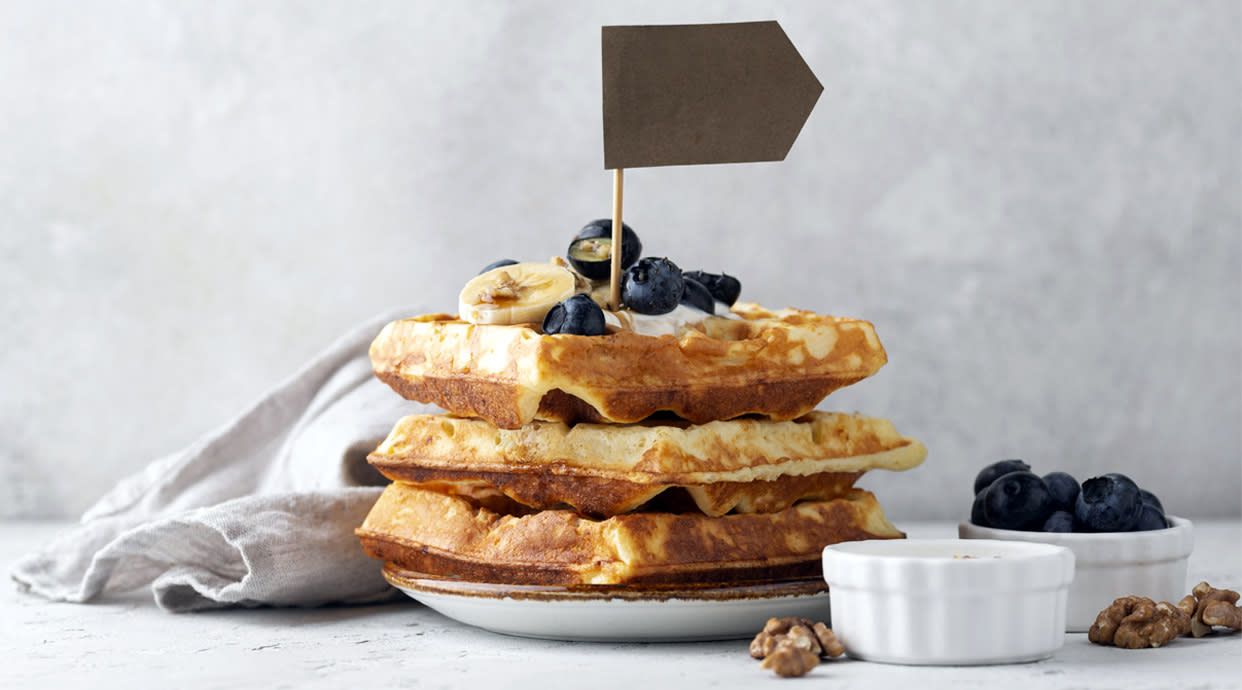 Мини палачинки с масло, пудра захар, бял шоколад, бели шоколадови скалиети и филиран бадем.