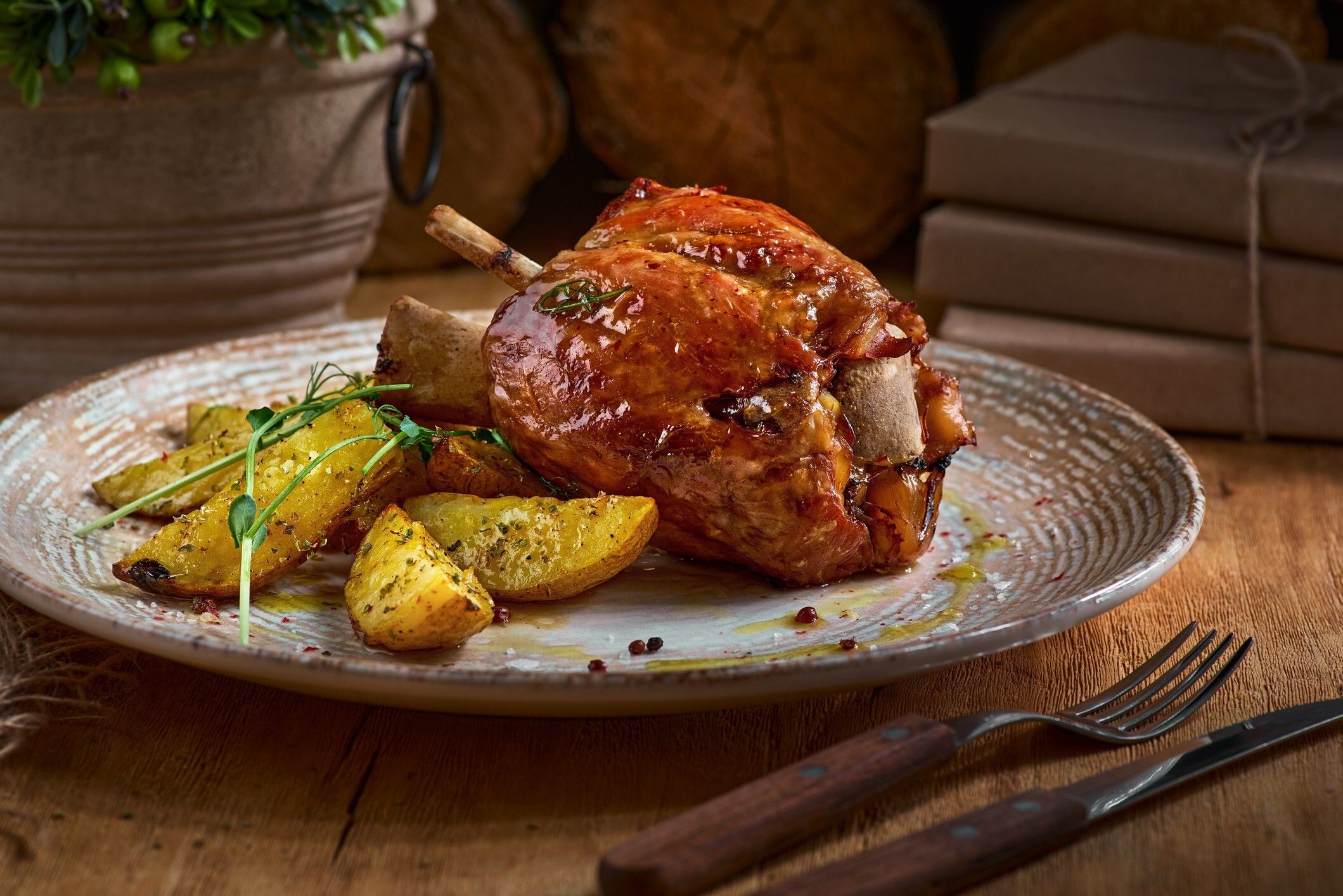 Обезкостено свинско джоланче с гъбен сос, гарнирано с ориз Арборио 350 г