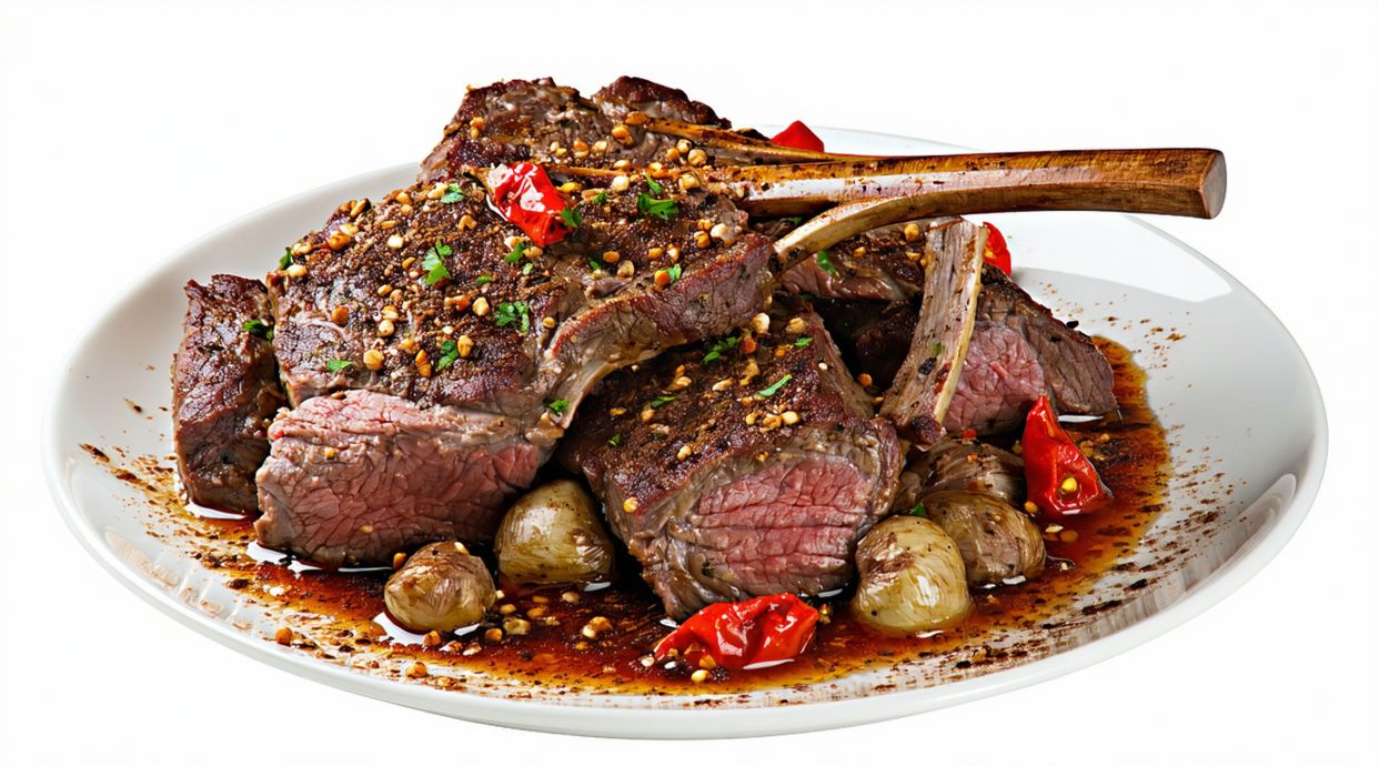 Plat de viande de mouton assaisonnée et cuite à la braise