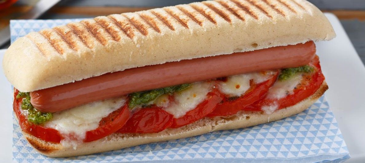 Pain garni d'œufs , pomme de terre, ketchup, mozzarella