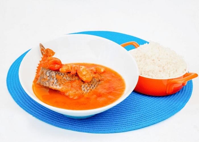 Soupe de poisson carpe servie avec du riz blanc