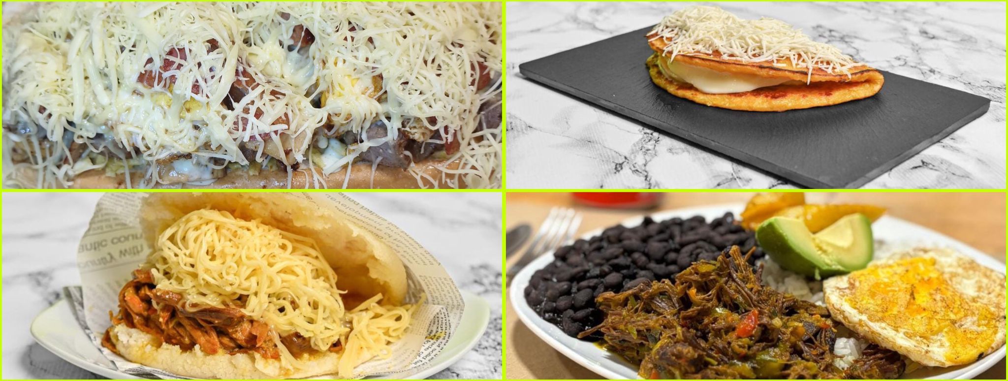 Harina de maíz a la plancha, con mantequilla, rellena de pollo desmechado y de queso rallado.