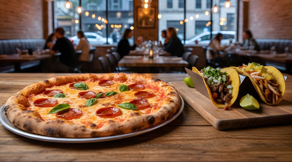 Frijoles refritos, mozzarella, pimientos, cebolla morada encurtida y queso Oaxaca. Base cremosa de frijoles, queso fundente y el equilibrio justo entre profundidad y frescura mexicana.