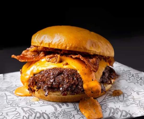 Doble carne, doble queso, salsa Emmy, cebolla frita y bacon