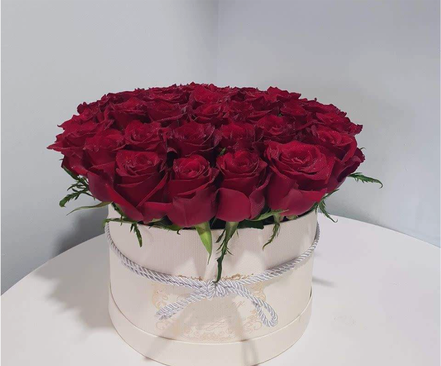 30 წითელი ვარდი ყუთში