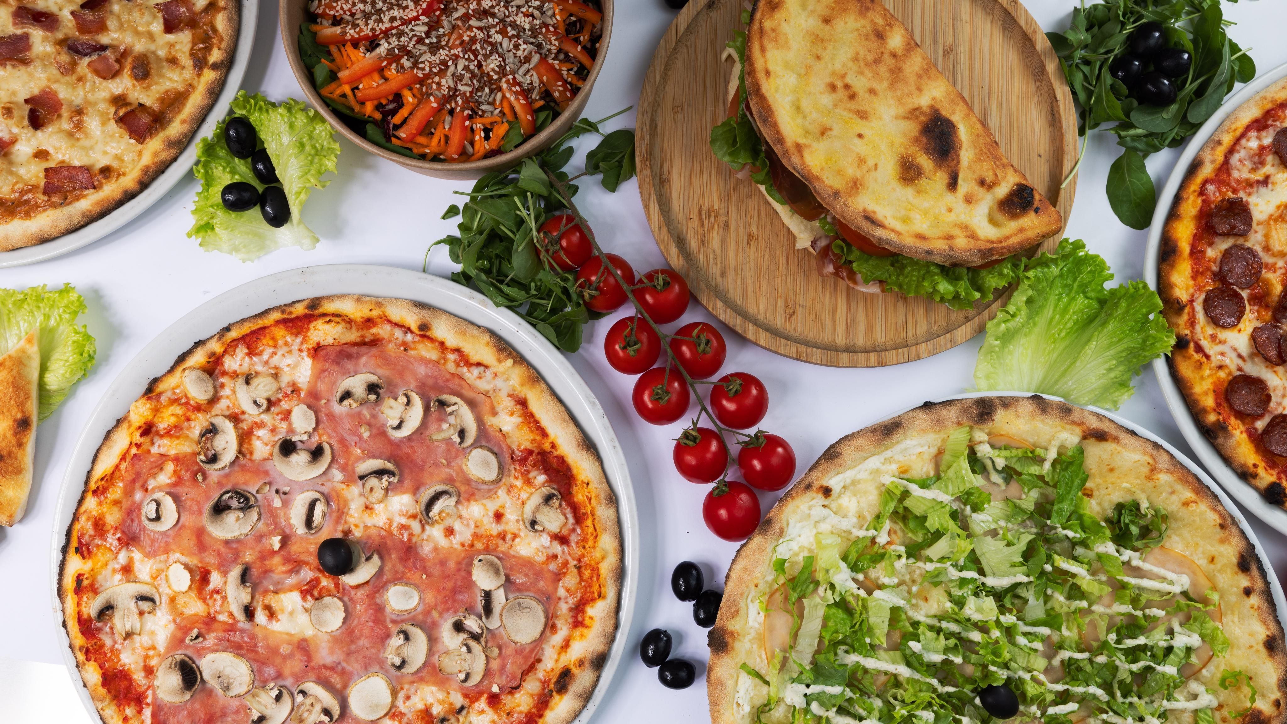 Pelati, sir gouda, šunka, gljive, origano, maslina, pizza 32 cm