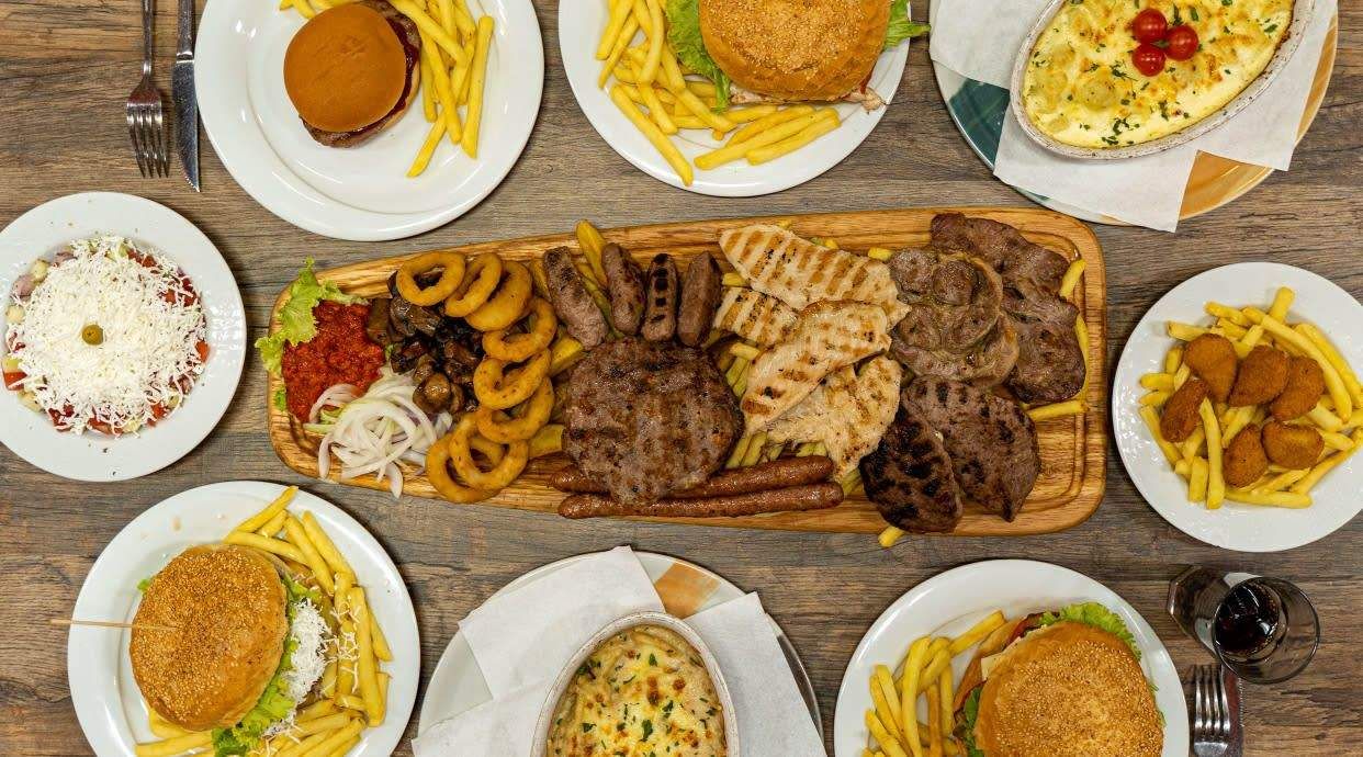 Ćevapčići, punjena pljeskavica, kobasica, piletina, kotlet, luk, ajvar