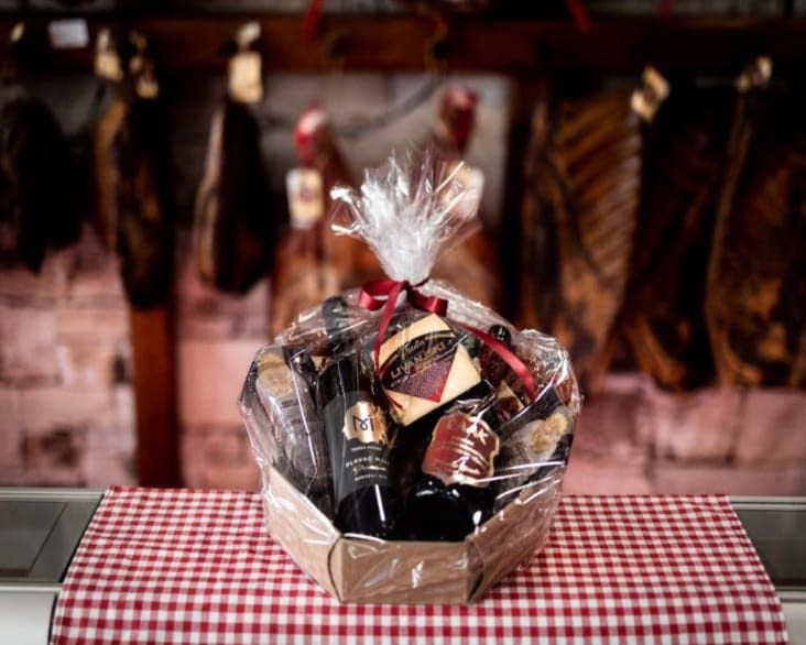 2x buđola 100grama, 2x pršut 100grama, 1x sir s mediteranskim biljem, 1x vino višnja 187 mililitara, 1x papričica crvena sa sirom