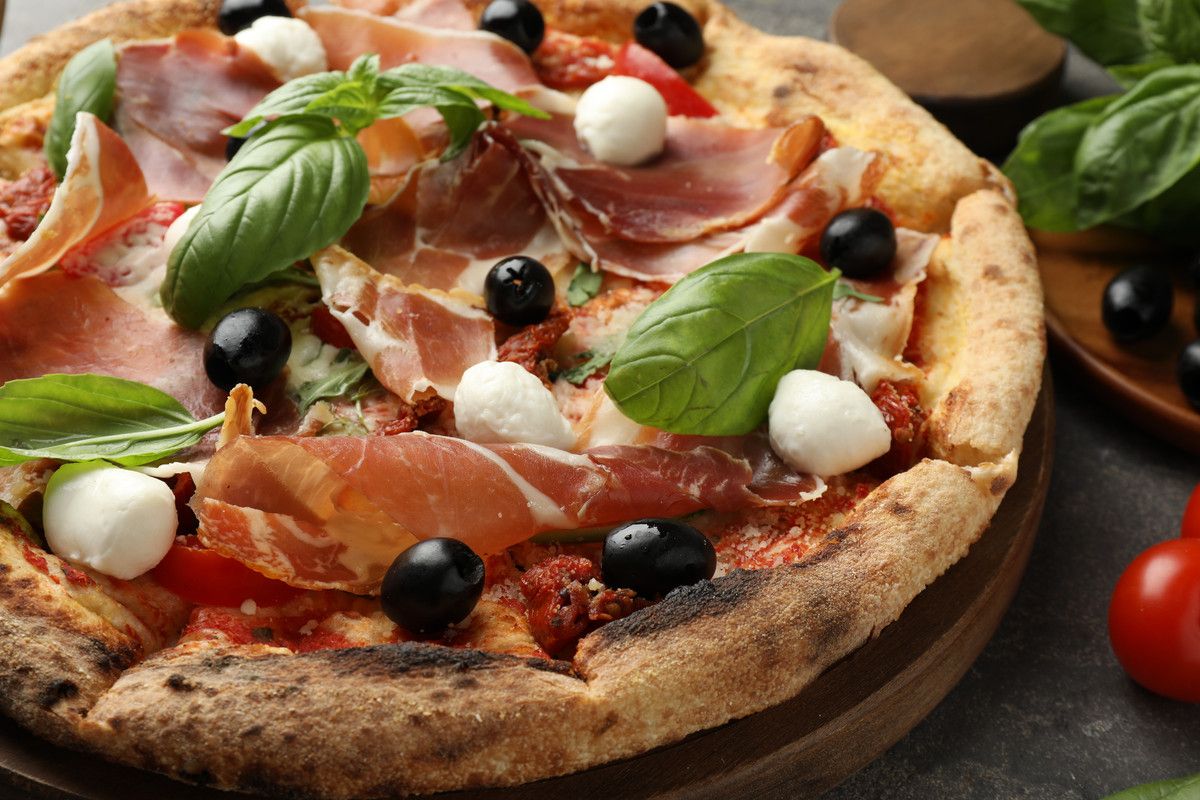 Pomodoro salame napoli prosciutto cotto funghi champignon carciofi olive nere Basilico olio