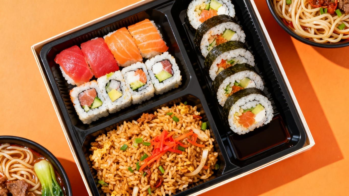 6 nigiri, 4 uramaki, 6 hosomaki, 6 sashimi sake. Allergeni: pesce, glutine, frutta a guscio, soia