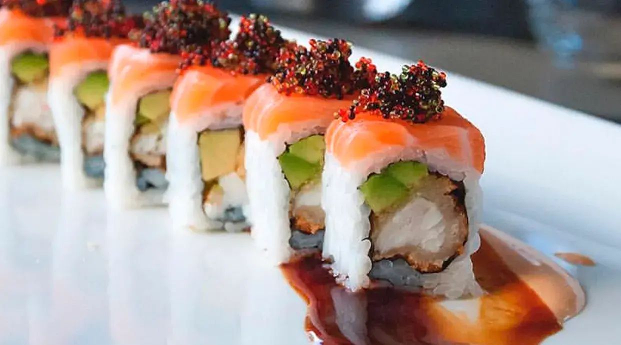 Surimi di granchio, avocado, polpo, tonno, salmone speciale, piccante e sesamo, salsa teriyaki