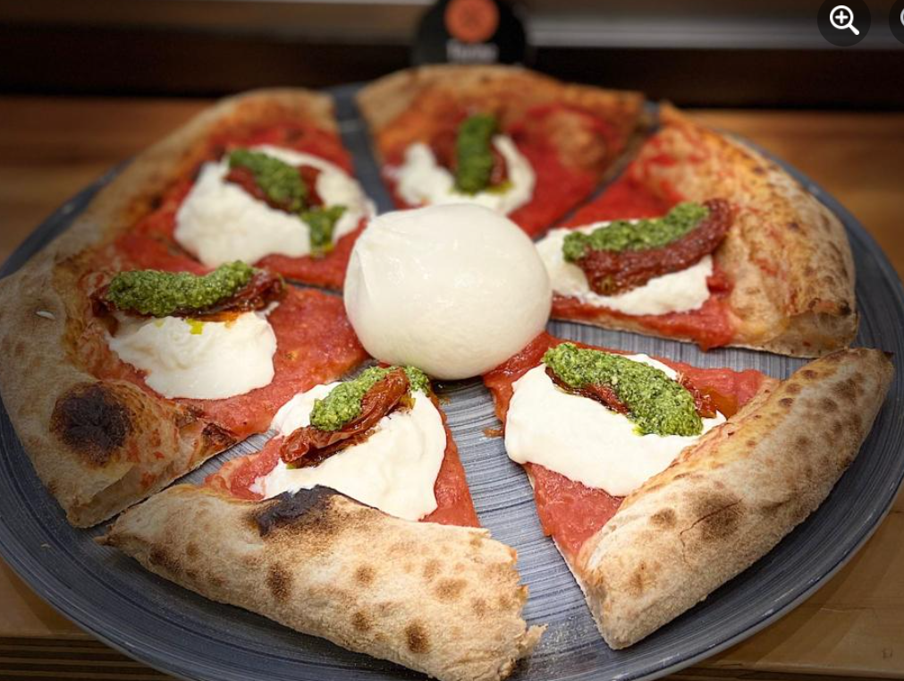 Pomodoro San Marzano, pesto di basilico e pinoli, pomodori secchi e burrata 125g