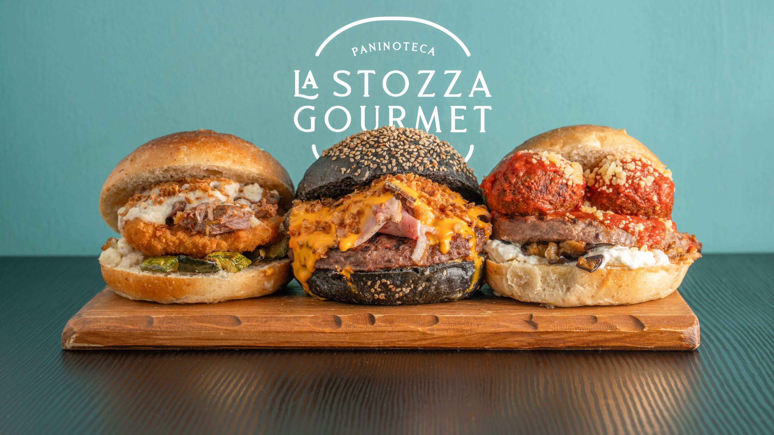 Hamburger black angus 200 g, crocchè di patate, provola affumicata, mortadella, pesto di pistacchio di Brönte