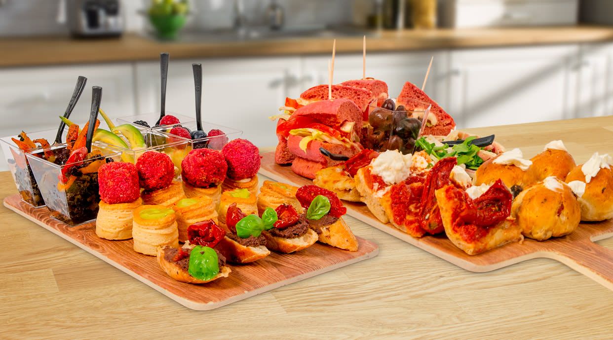 Pizza Margherita, bacetti saporiti, prosciutto cotto, insalata pan di zucchero, olive taggiasche, piadina classica, bun curcuma o barbabietola