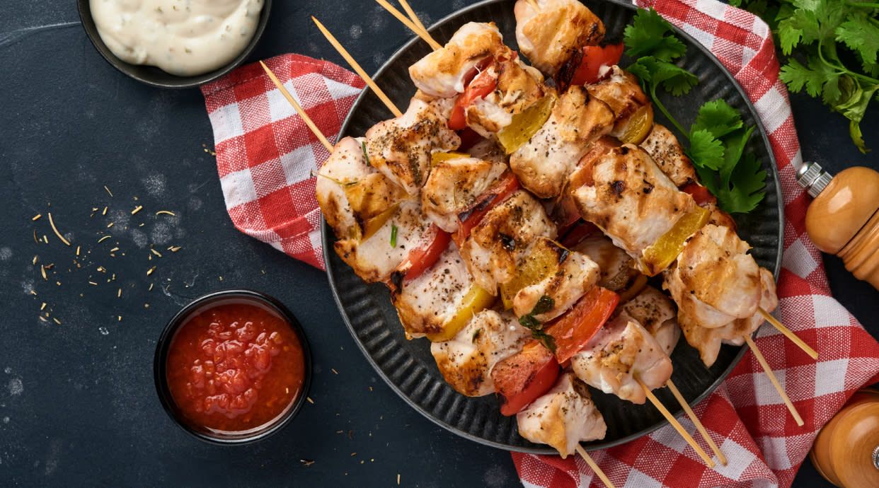 Nyama ya kuchoma iliyokaangwa vizuri kwenye kijiti na kukolezwa viungo vya kipekee. Inapatikana na mchuzi wa kuvutia na saladi ndogo kando.