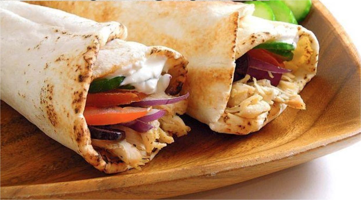 Лаваш, куриное мясо, огурцы, помидоры, сырный соус, картофель фри, капуста, морковь