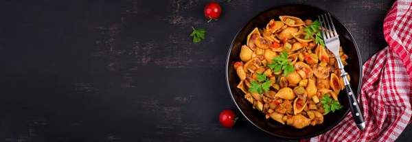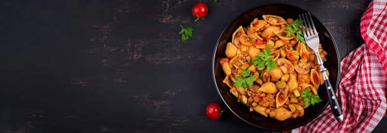 Pate, sauce tomate, viande