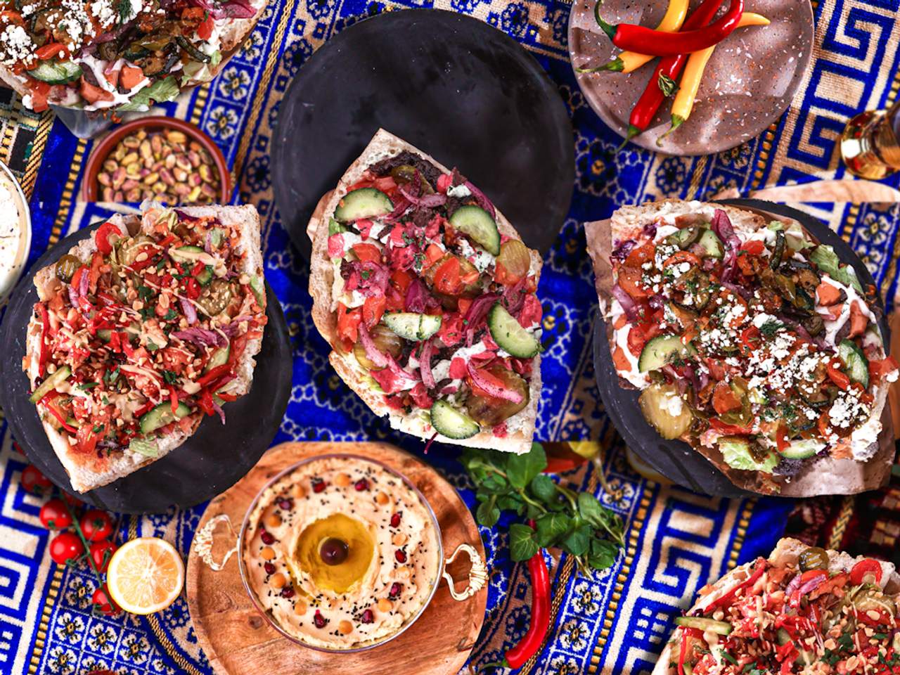 sałata lodowa, czerwona kapusta, mięso do wyboru, autorska pasta z papryki, sos miętowy, pomidor, czerwona cebula, ogórek zielony, czarne oliwki, ser bałkański, szczypta świeżej mięty, kilka kropel cytryny