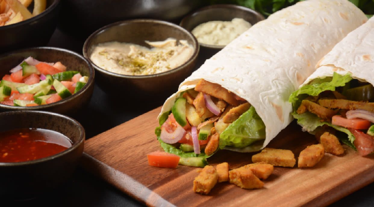 mięso, kapusta biała, kapusta czerwona, kapusta pekińska, sałata lodowa, pomidor, ogórek zielony, papryka czerwona, papryka zielona, papryka żółta, cebula czerwona, marchewka, sos