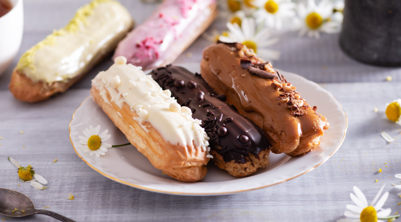 Suntem încântați să îți prezentăm eclerul nostru cu cremă de trandafir, o combinație deosebită ce te va cucerii cu delicatețea și prospețimea sa - 100g