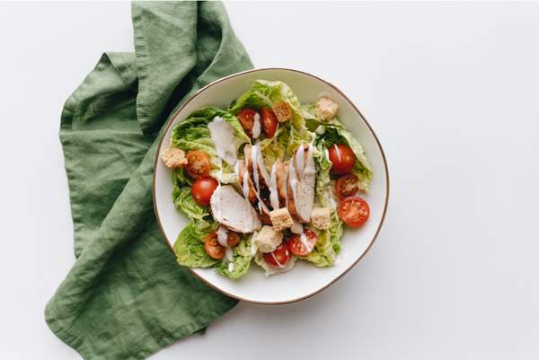 Grilovana piletina, krastavac, paradajz, zelena salata, dresing