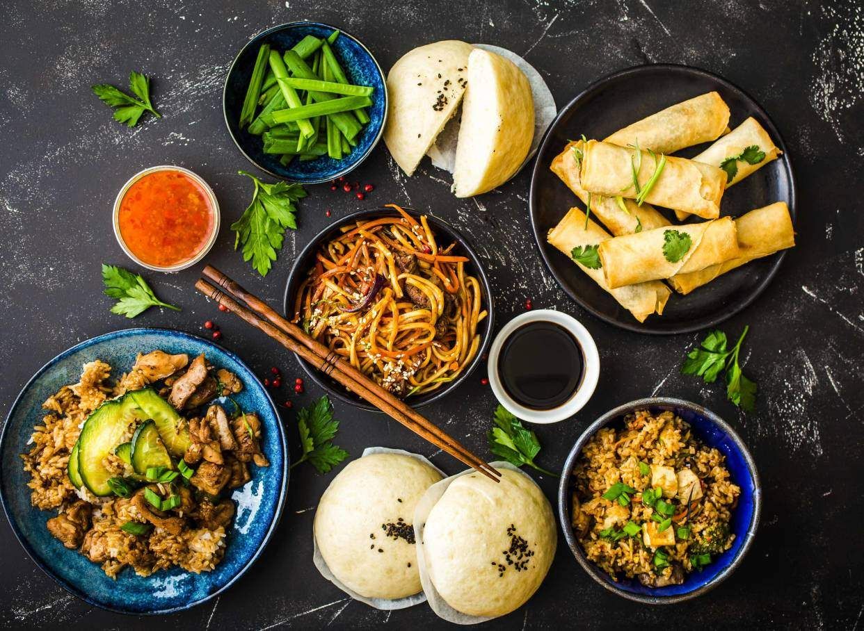 Ориз , пилешко филе , зеле ,моркови грах, царевица ,соеви кълнове ,яйце