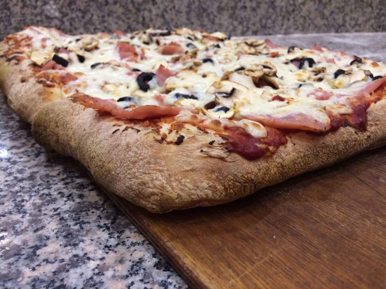 пшеничено брашно, доматен сос, шунка, маслини, гъби, кашкавал