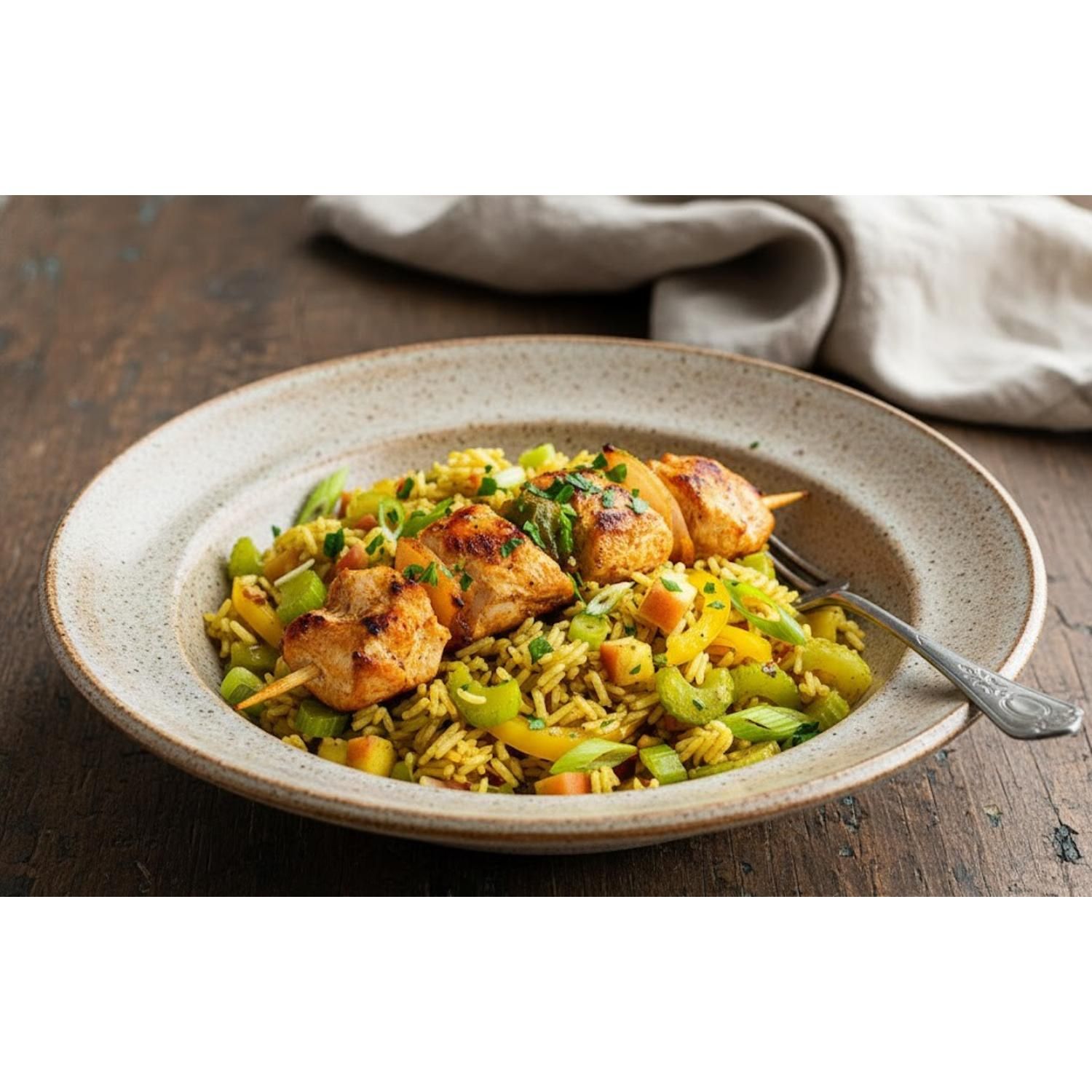 Riz Au Curry & Brochettes De Poulet