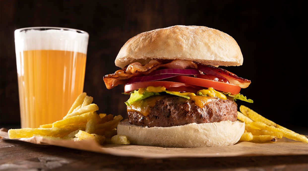 Delicioso sándwich caliente con crujiente bacon, queso fundido, lechuga fresca y tomate jugoso. Una combinación sabrosa y satisfactoria