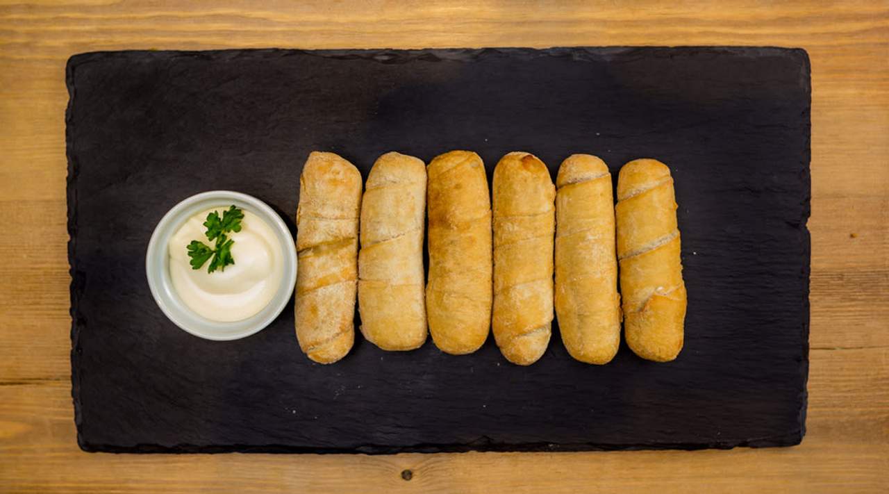 Deliciosos palitos de harina de trigo rellenos de queso con sabor a pizza