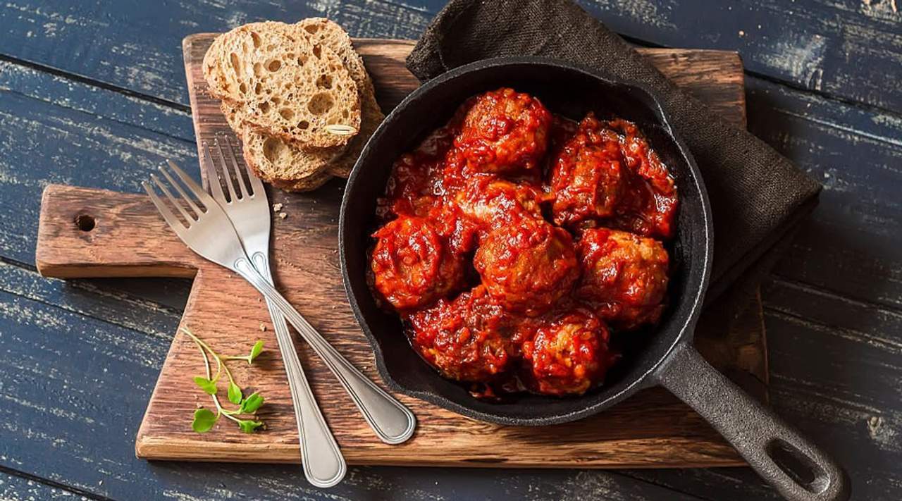 Jugosas albóndigas cocidas a fuego lento en una rica salsa de tomate