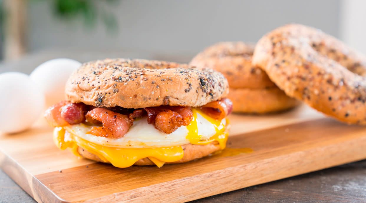 Delicioso bocadillo con pan de masa madre relleno de bacon y queso