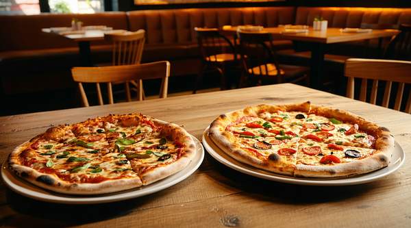 Pomodoro, Fior di latte, orégano, gorgonzola, parmigiano y stracciatella