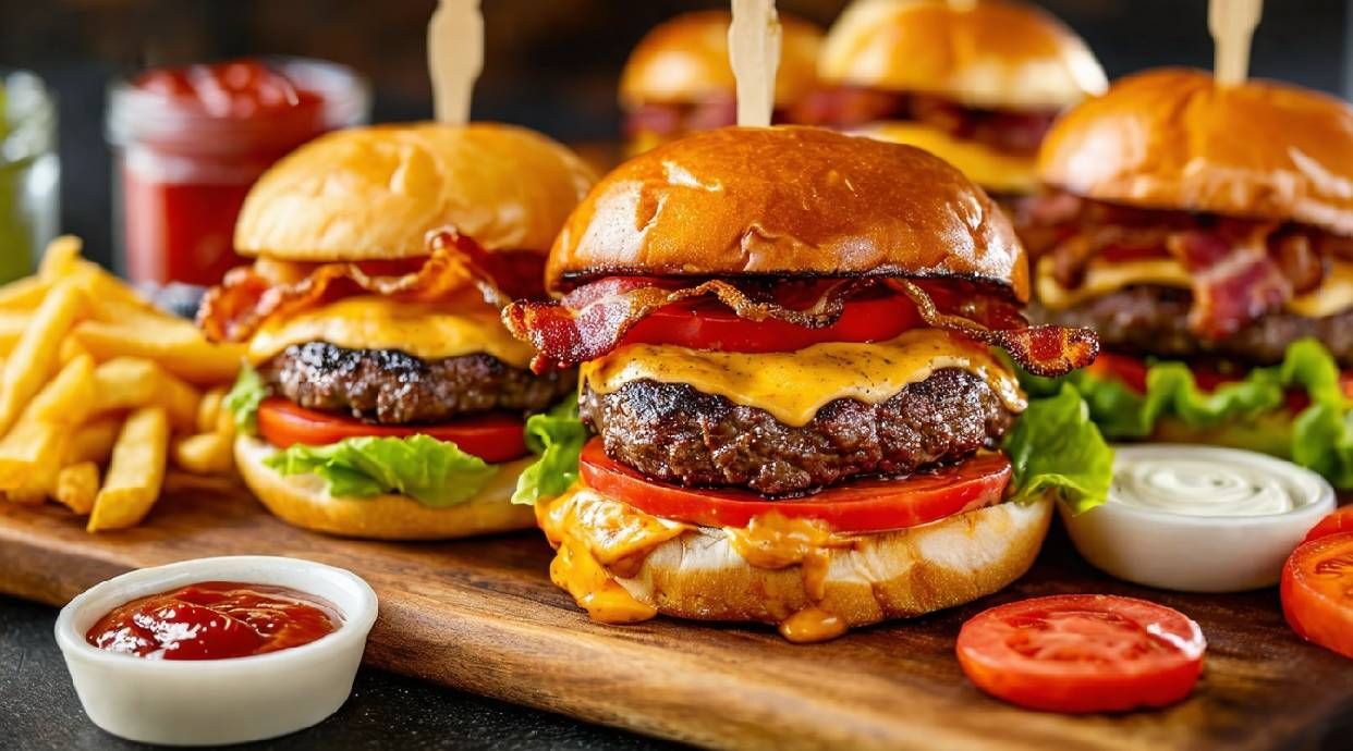 Base de salsa especial, TRIPLE DE CARNE y triple chedar, cebolla caramelizada y salsa honey picantebarbacoa