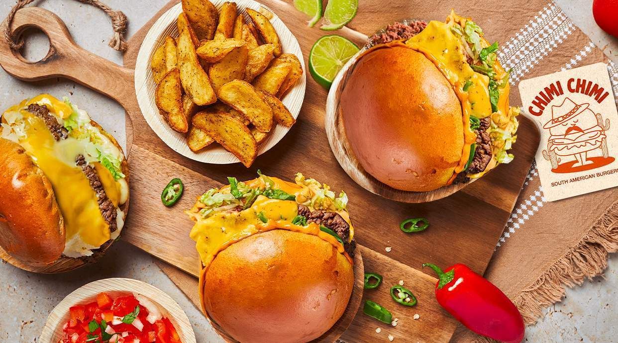 Pan brioche, mayo chimichurri, hamburguesa black angus, doble queso cheddar fundido y lechuga iceberg