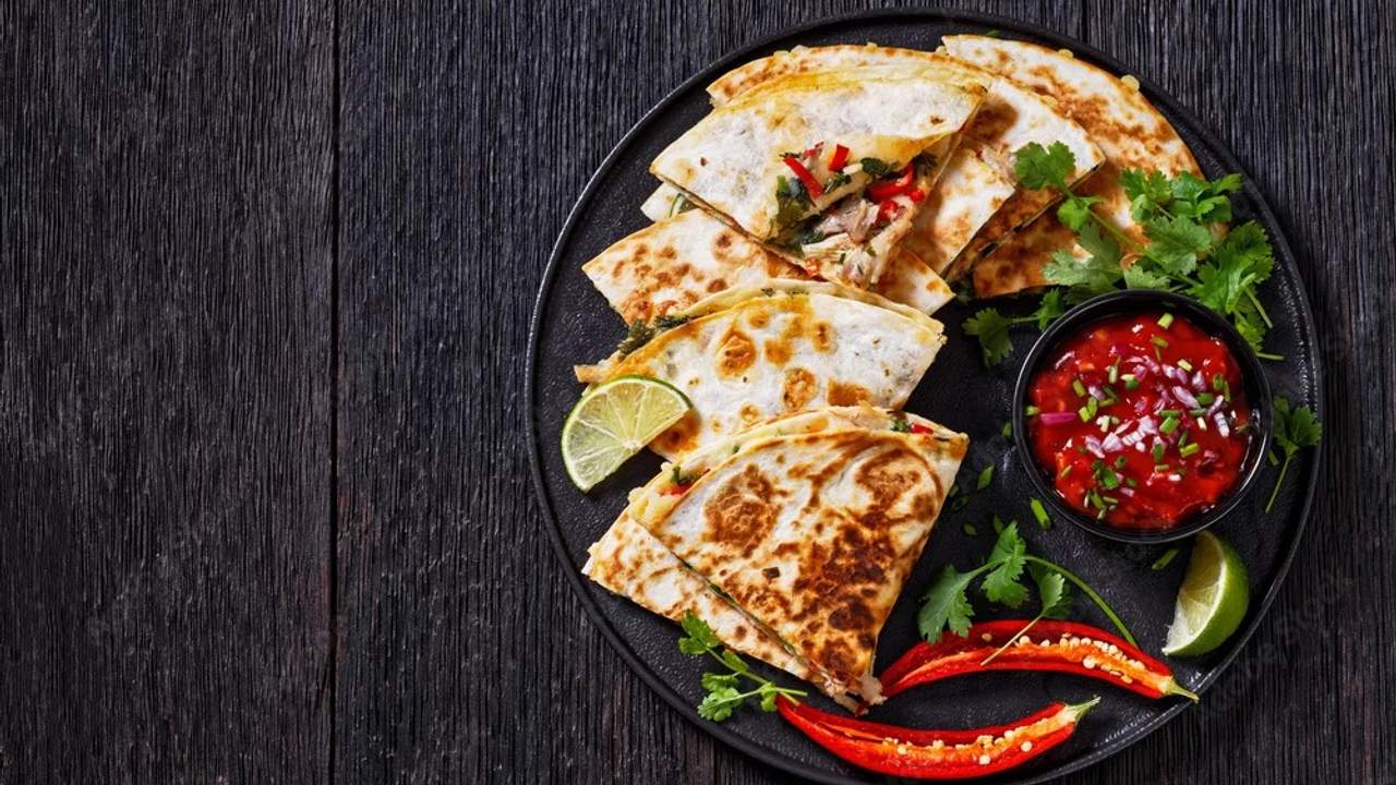 "25 სმ-იანი ტორტილას 3 ნაჭერი, 165 გ ქათამი, მწნილი, ჩედარი და ჩვენი სპეციალური სოუსი“