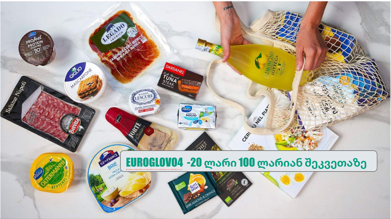 EUROGLOVO3 გამოიყენე პრომოკოდი და ისარგებლე -20 ლარიანი შეთავაზებით მინიმუმ 100 ლარიან შეკვეთაზე