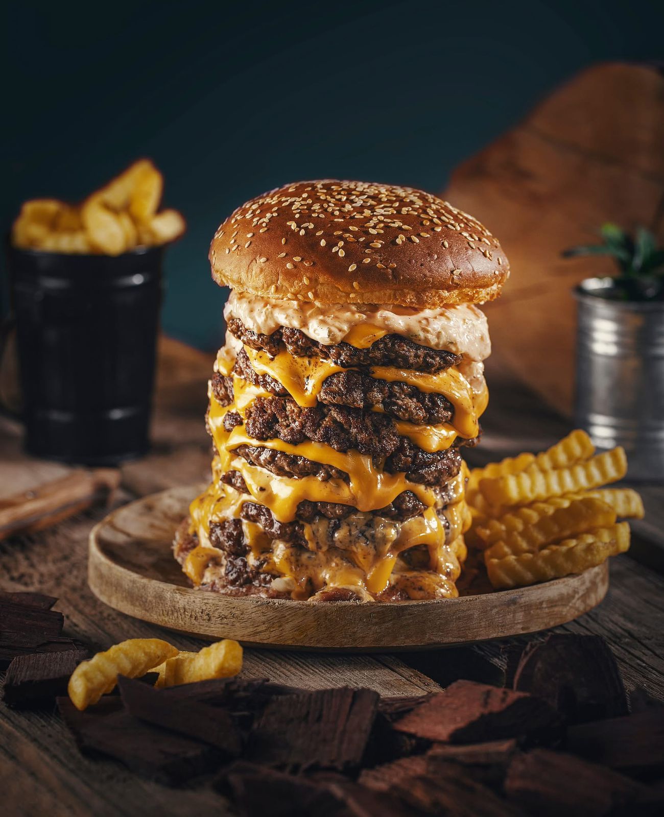 პური, სპეც სოუსი, აისბერგი, ორმაგი საქონლის ხორცი, ორი ამერიკული ჩედარი.