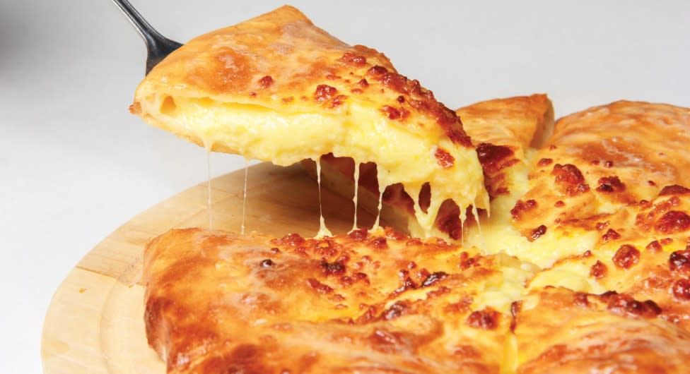 ანანასი, დაპრესილი შაშხი, მოცარელა, პარმაზანი, პომიდვრის სოუსი