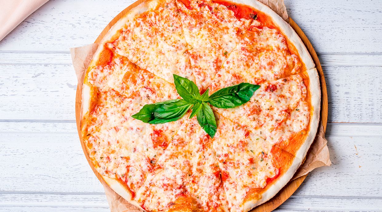 Pomodoro, mozzarella, funghi, prosciutto cotto, carciofi, olive
