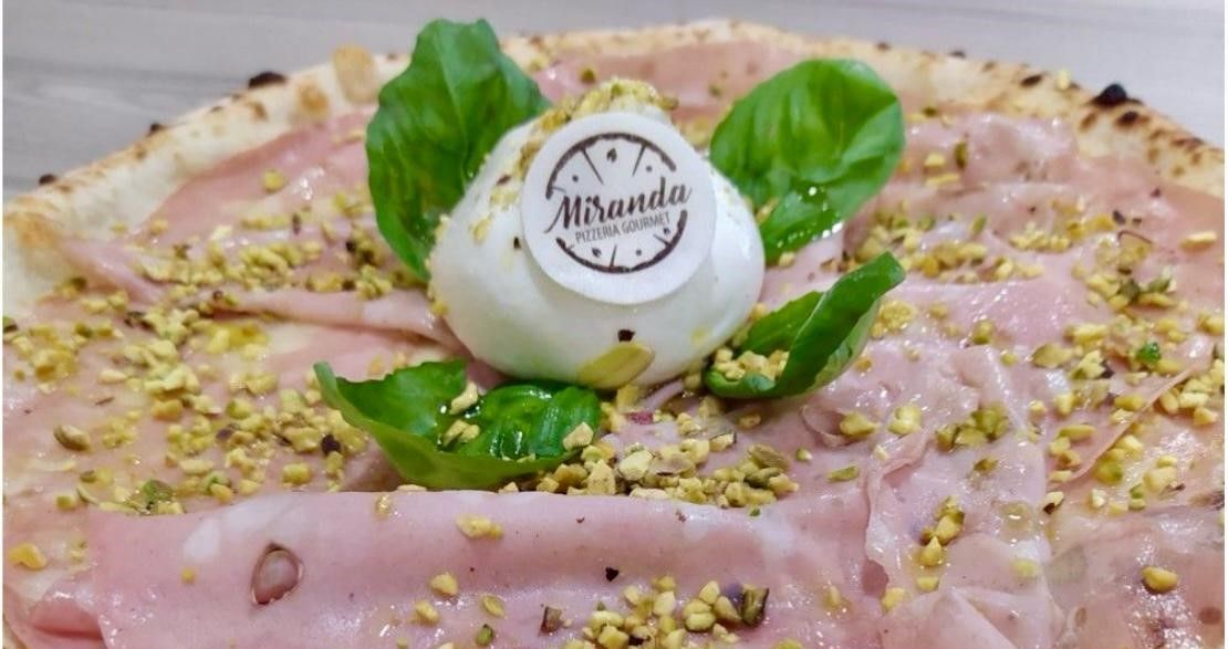 Fior di latte 100% italiano, mortadella IGP al pistacchio, , granella di pistacchio, olio EVO e basilico in uscita