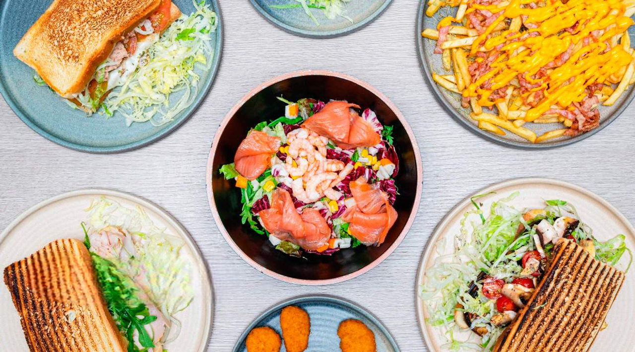Lattuga, salmone affumicato, avocado, feta, ananas, datterino, semi di chia