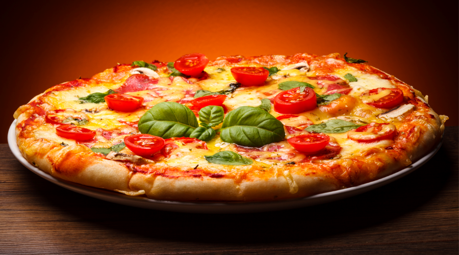Pomodoro, mozzarella, prosciutto cotto, funghi, carciofi, olive
