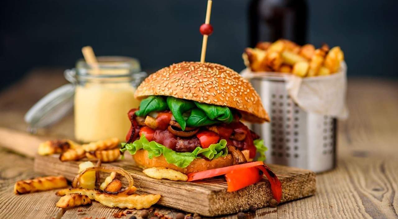Pane di nostra produzione, Hamburger 100g, Bacon croccante, Rucola, Anelli di Cipolla³ Fritti, Provola Affumicata e Salsa BBQ