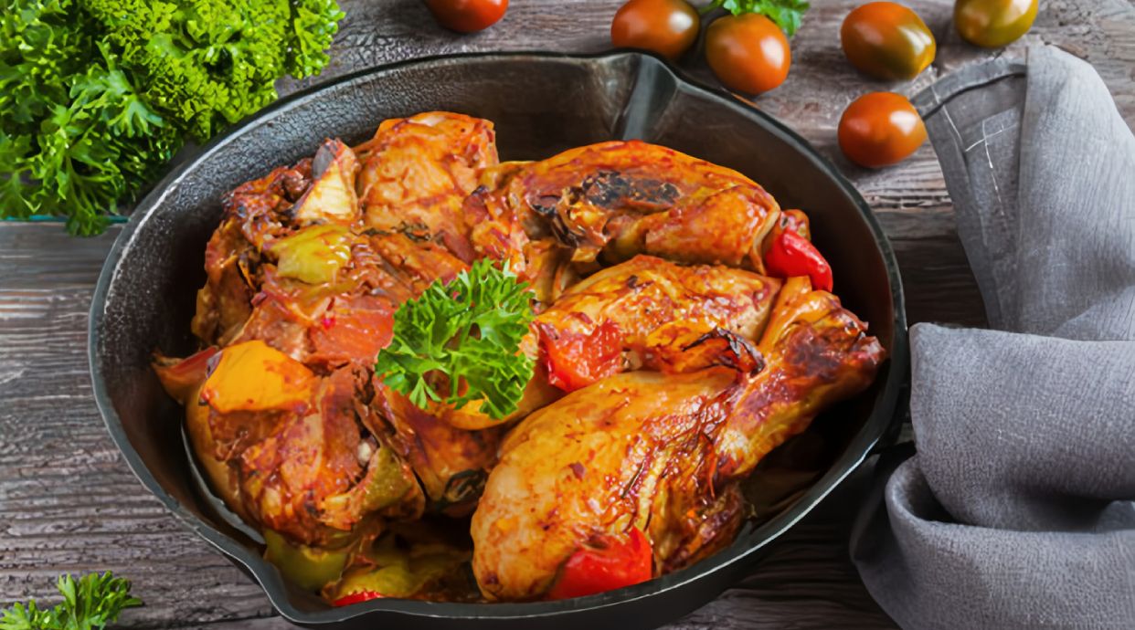 Chicken pieces cooked in sauce