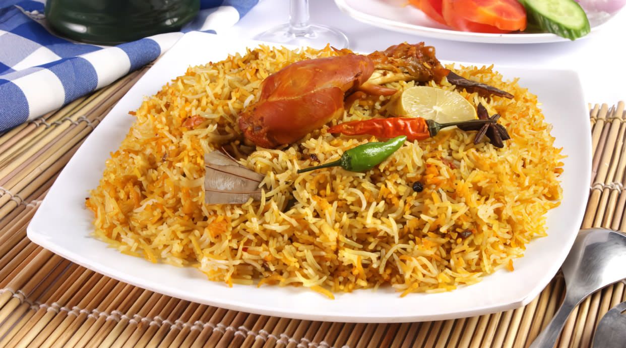 Tasty pilau served with chips