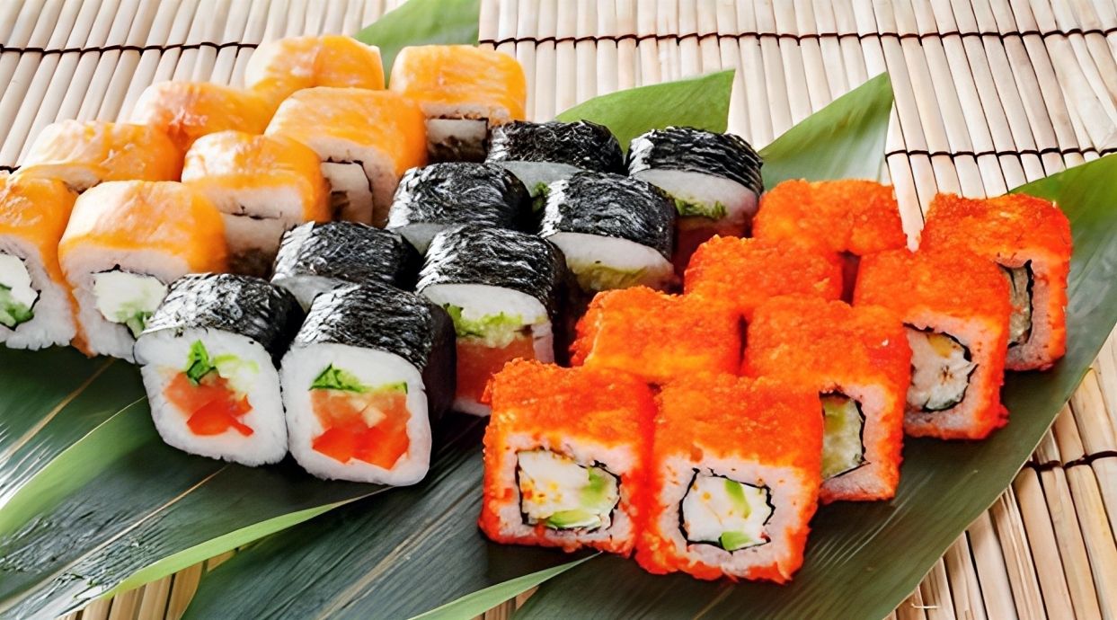 Филадельфия Классик, Фуджияма, Калифорния Краб, Спайси Сяке, Американо Темпура, Maxroll Креветка, Такуан маки, Огурец маки, Суши лосось, Суши креветка