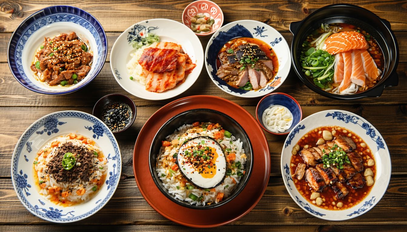 Классический рис с овощами, яйцом и соусом кочуджан.