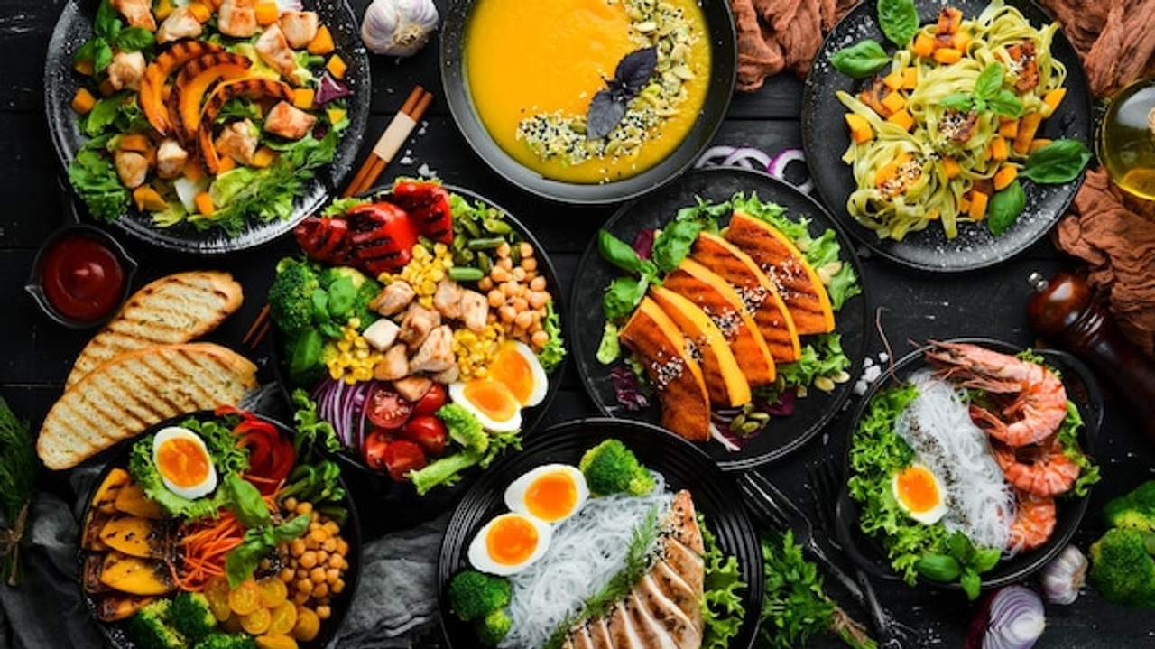 Сытный завтрак из яиц, говяжьих сосисок, хрустящего тоста и мини-салата